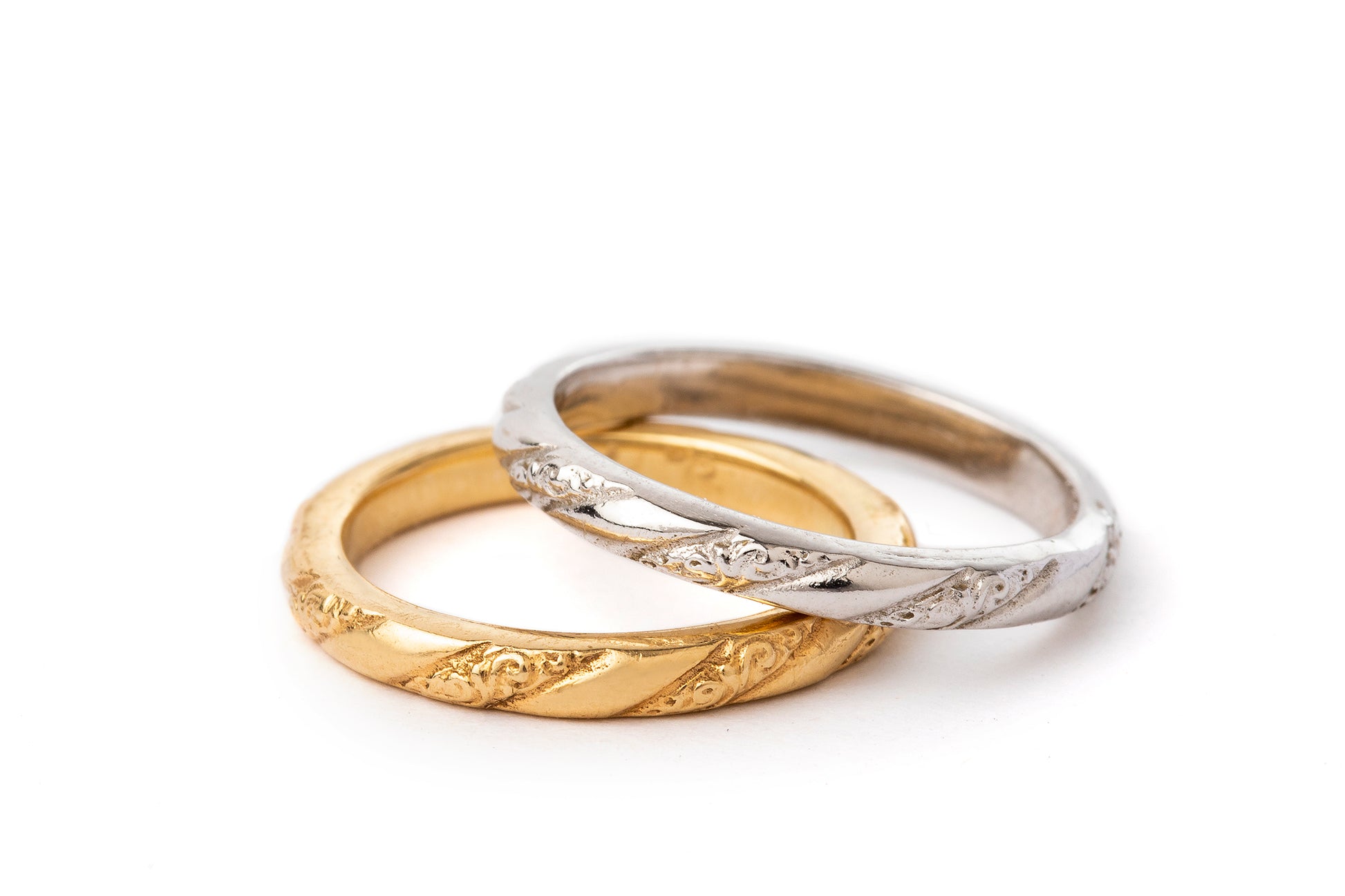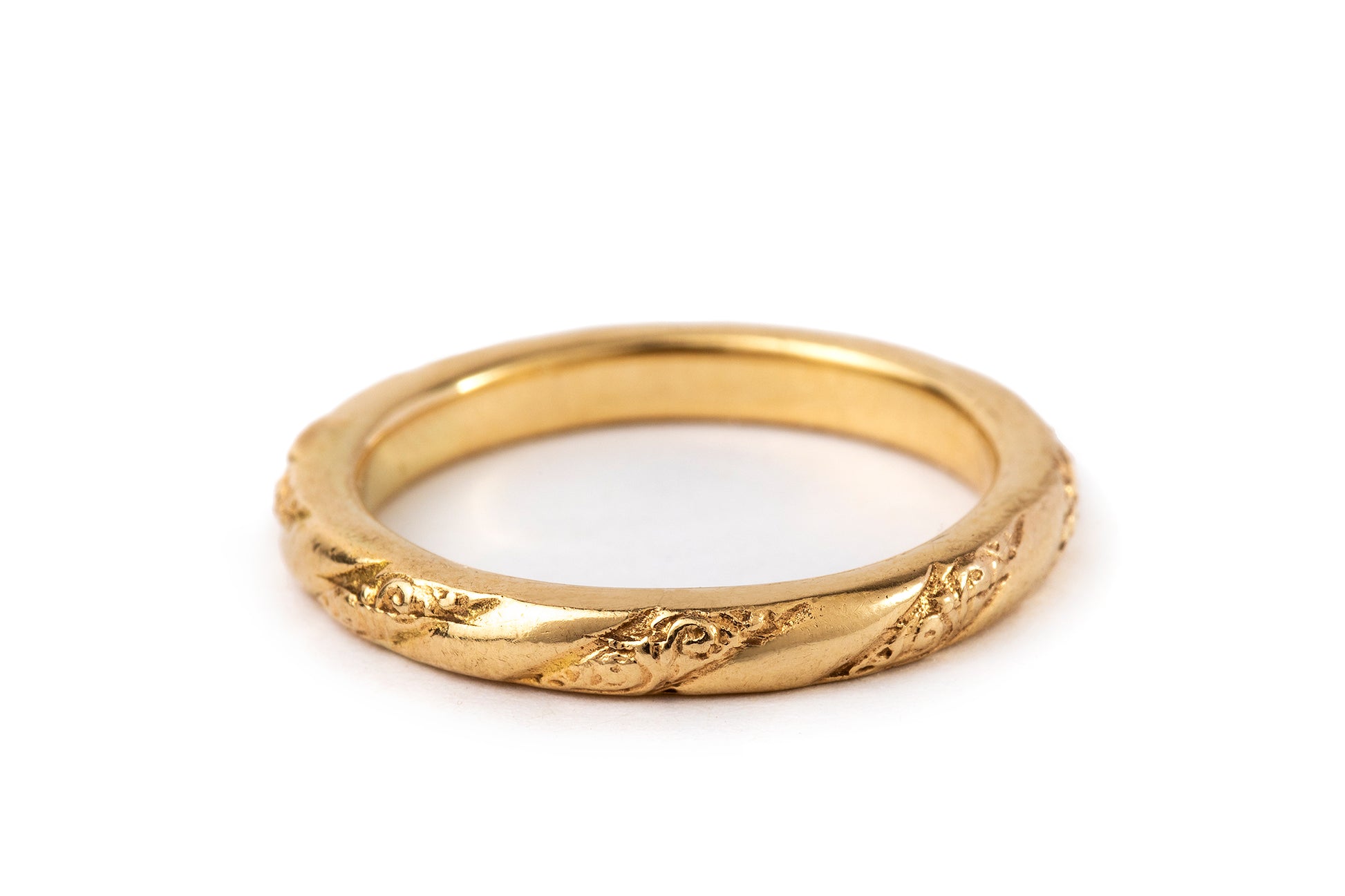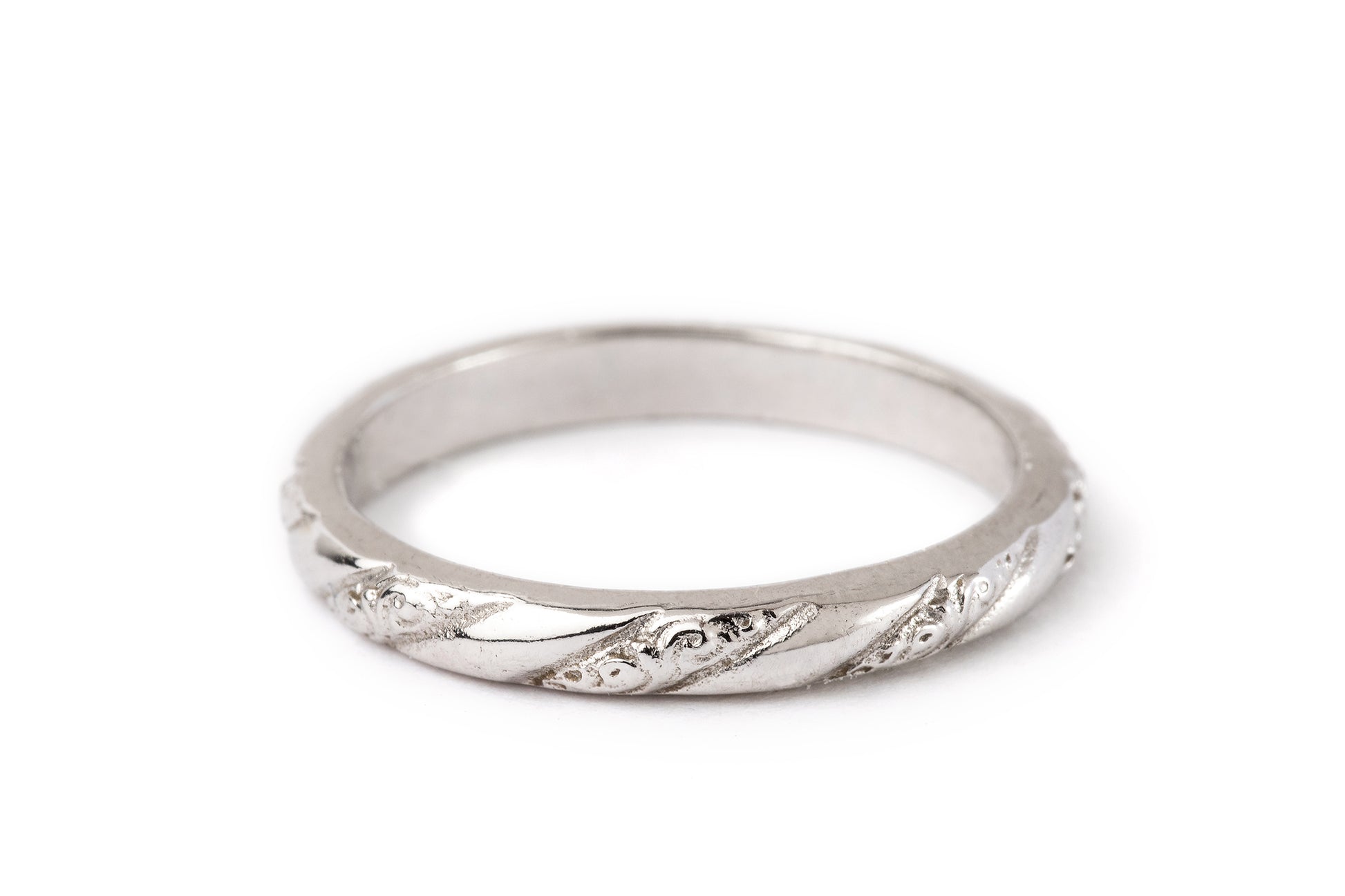 טבעת זהב מעודנת ומיוחדת עשויה בעבודת יד. מחולקת למקטעים אלכסונים אחד חלק ואחד עם עיטורים עדינים החוזרים לאורך כל הטבעת  . הטבעת עשויה בזהב 14 קראט אך ניתן להזמינה גם בזהב 18 קראט ובצבע צהוב, לבן או רוז גולד.