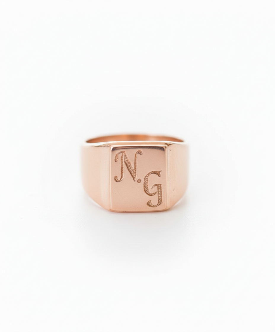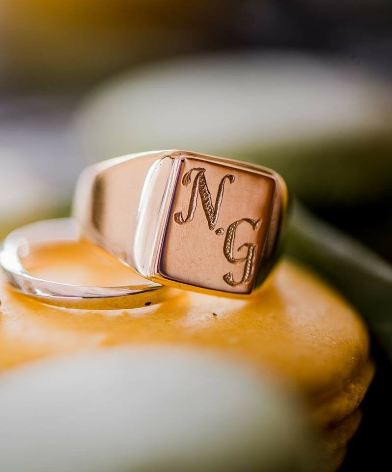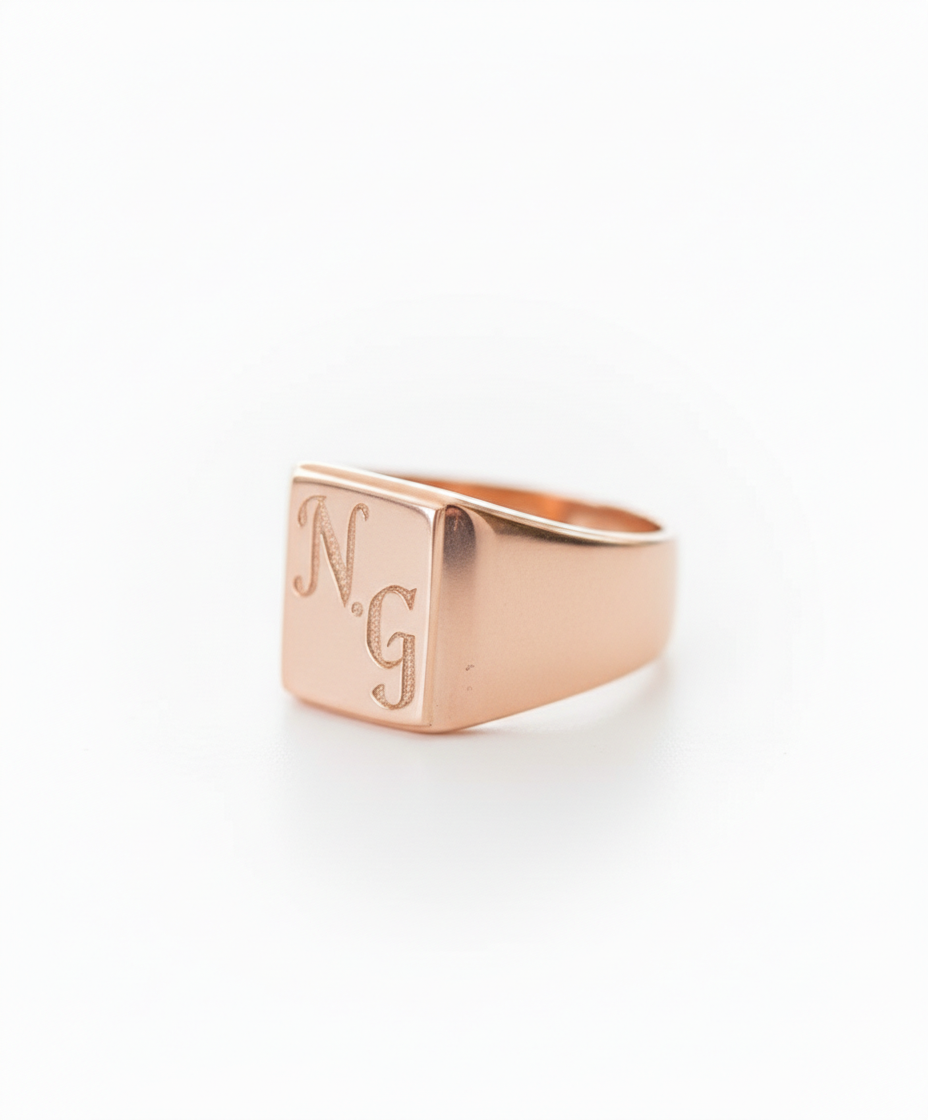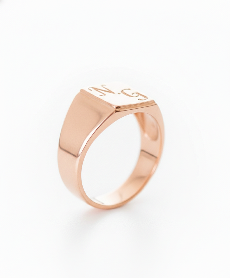 טבעת חותם זהב ייחודית למי שמחפש טבעת לא קונבנציונלית עם נוכחות ונגיעה אישית. טבעת חותם לגבר בעבודת יד שעליה ניתן לחרוט חריטה אישית כמו בדוגמא או ככל שיעלה בדמיונכם.