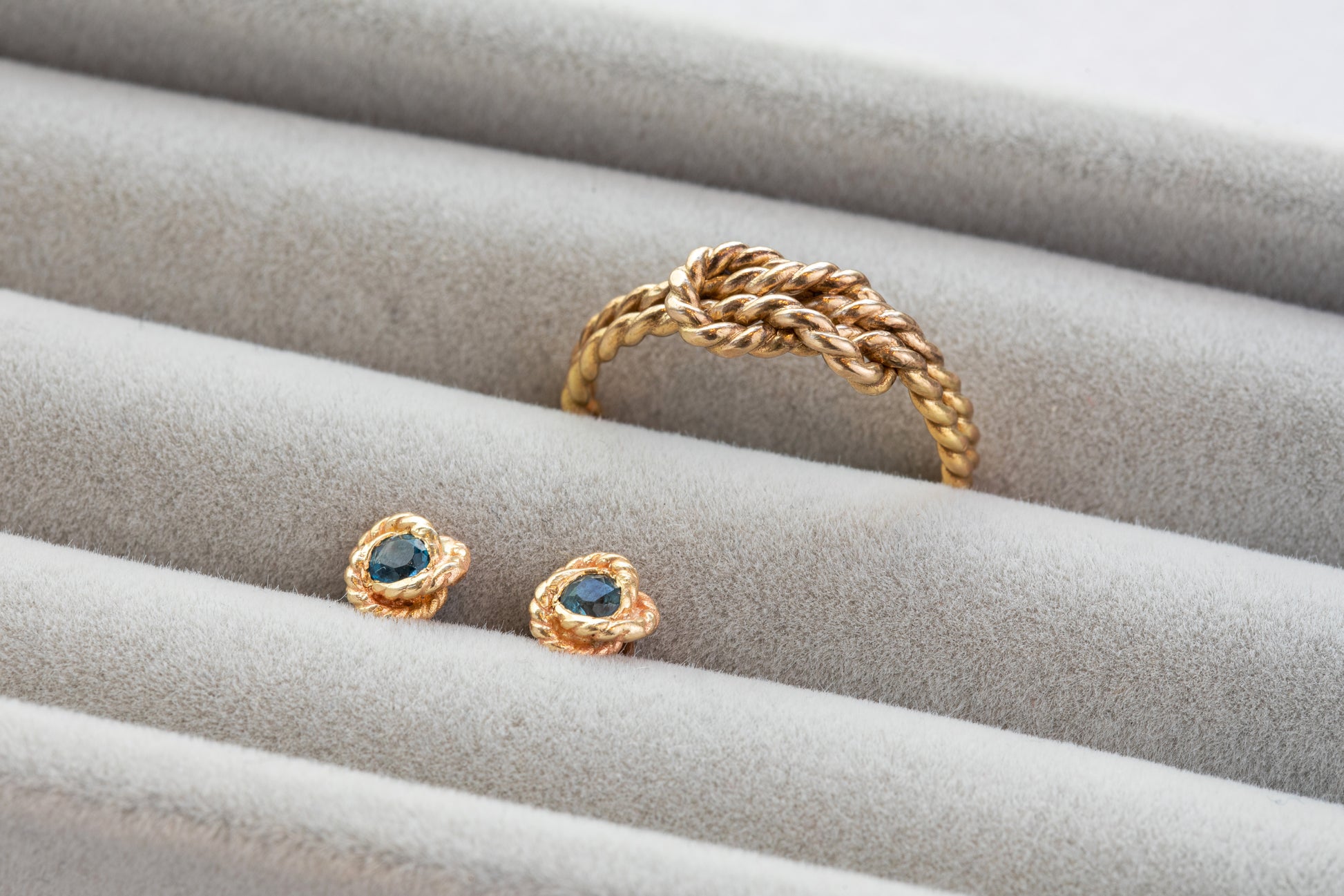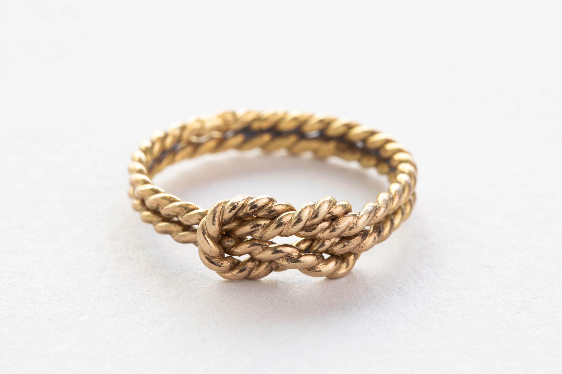 טבעת זהב בעלת טקסטורה ייחודית שנוצרת בעבודת יד על ידי יצירת שני פסי זהב מסולסלים המתמזגים יחד לטבעת אחת שבמרכזה קשר היוצר את צורת האינסוף.