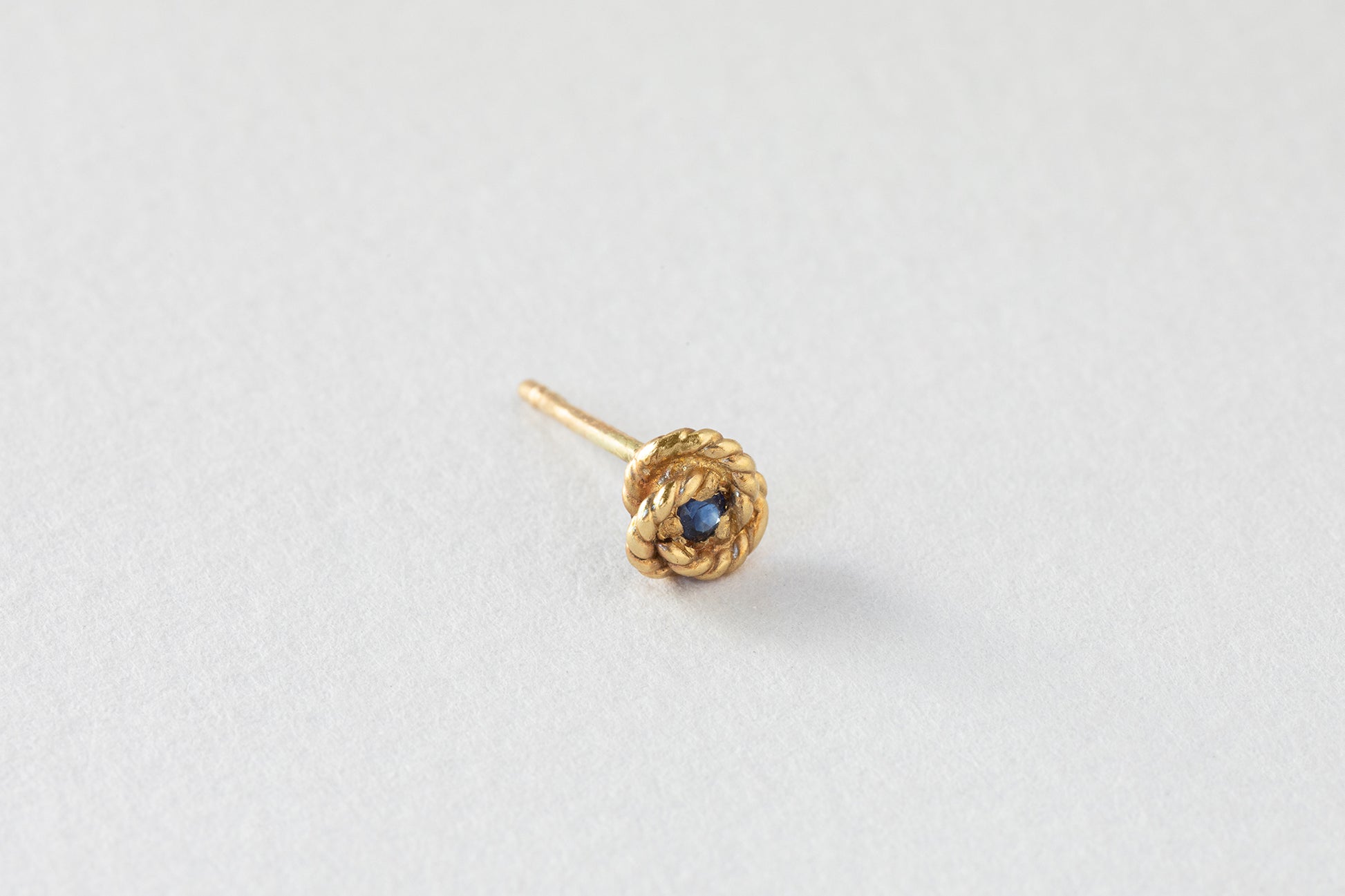 עגיל הקשר הקלאסי שלנו הוא עגיל זהב צמוד אוזן המשובץ באבן חן ספיר כחולה. העגיל עשויי בסטודיו בעבודת יד משני חוטי זהב מלופפים היוצרים חבל המחבק את הספיר. אפשר לענוד כתוספת מושלמת לעוד עגילים על האוזן או לבד. את העגיל ניתן לשבץ במגוון אבני חן לבחירה, נא לפנות בפרטי אם ברצונל לשמוע על ברירה זו.