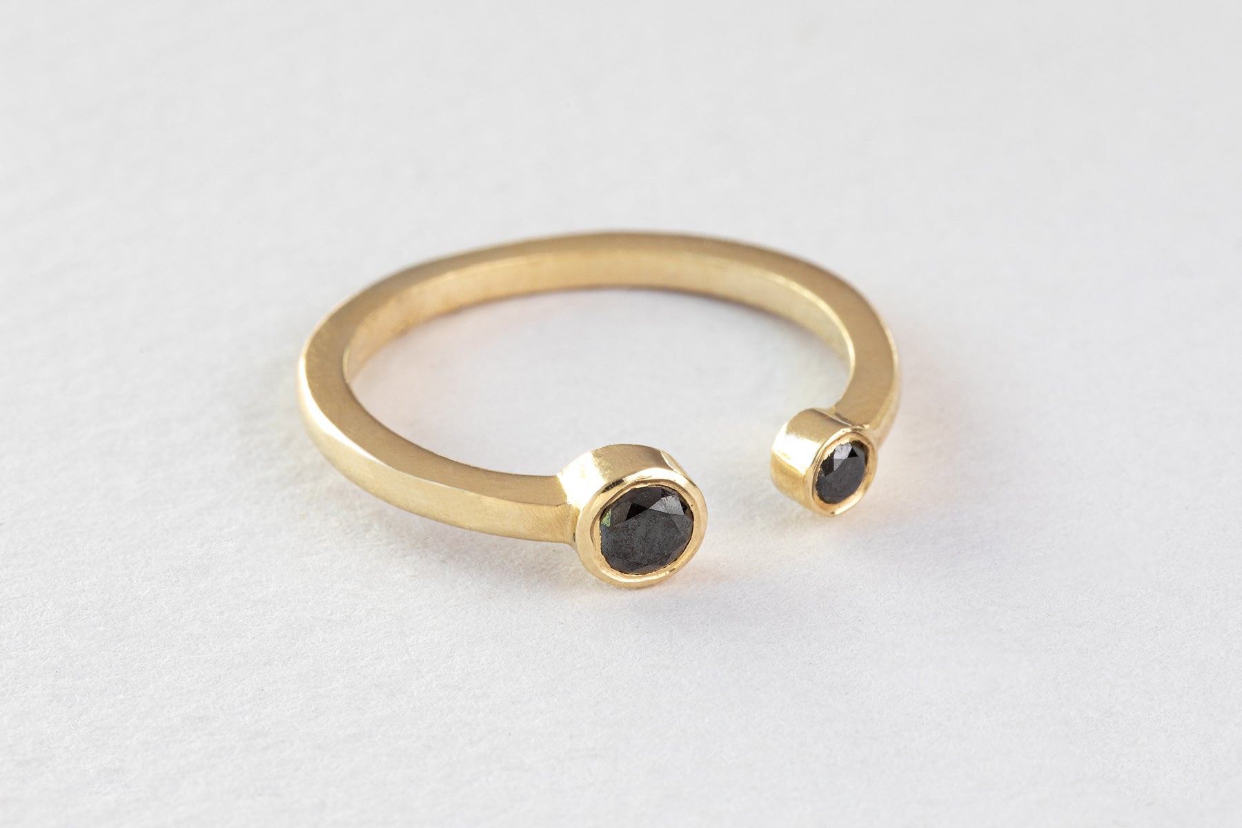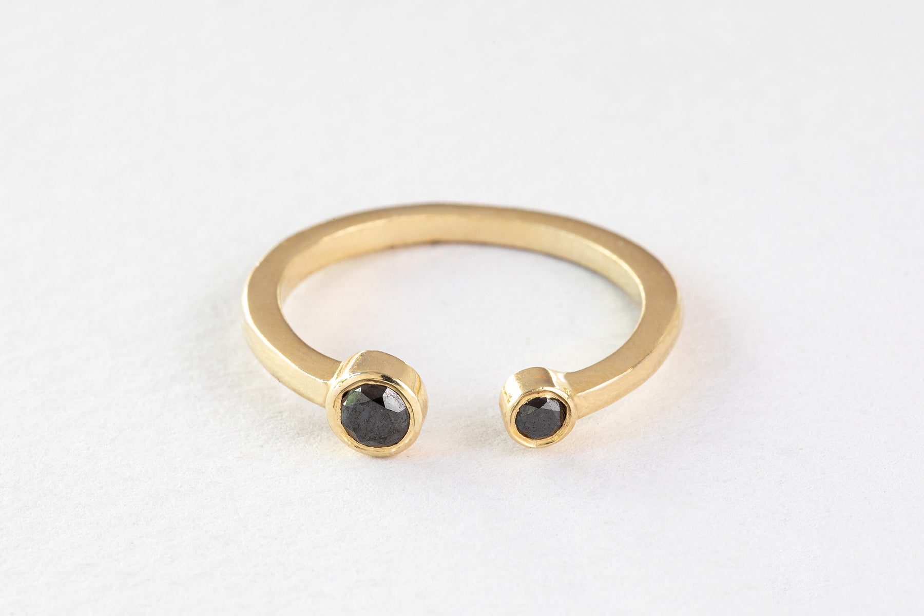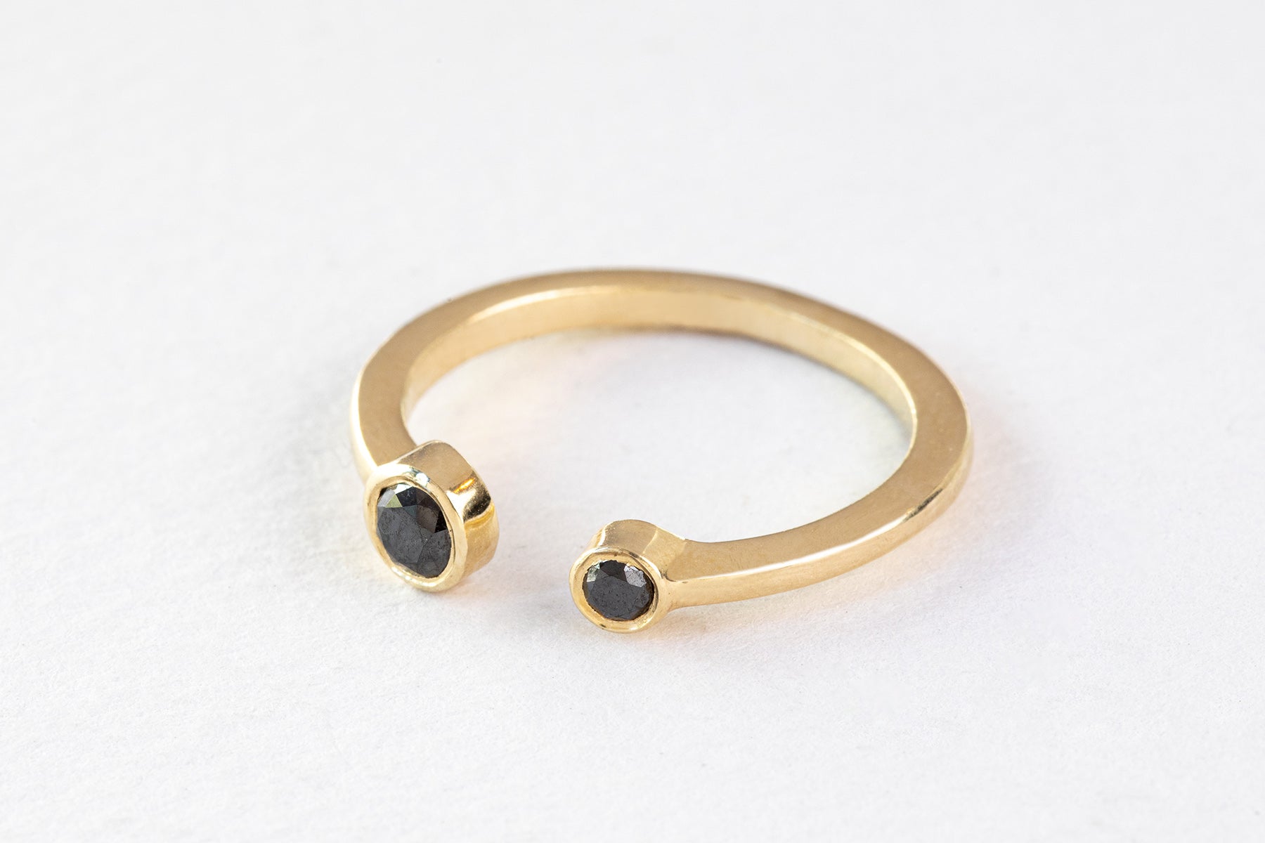 טבעת זהב פתוחה - שילה אסימטרית - יהלומים שחורים