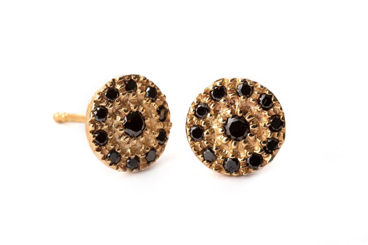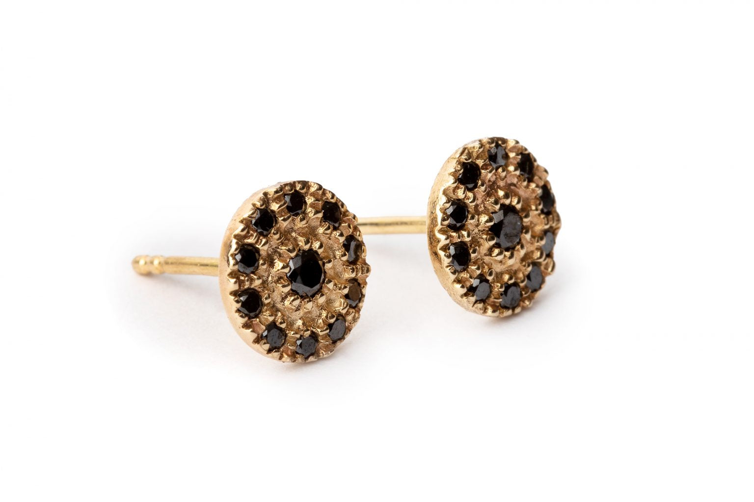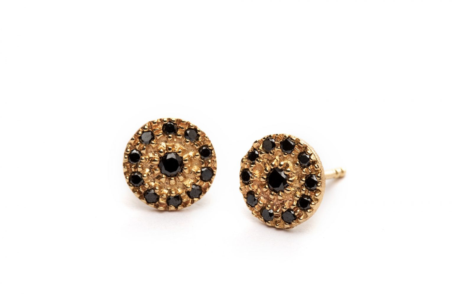 עגילי זהב עגולים משובצים - יהלומים שחורים - נגה