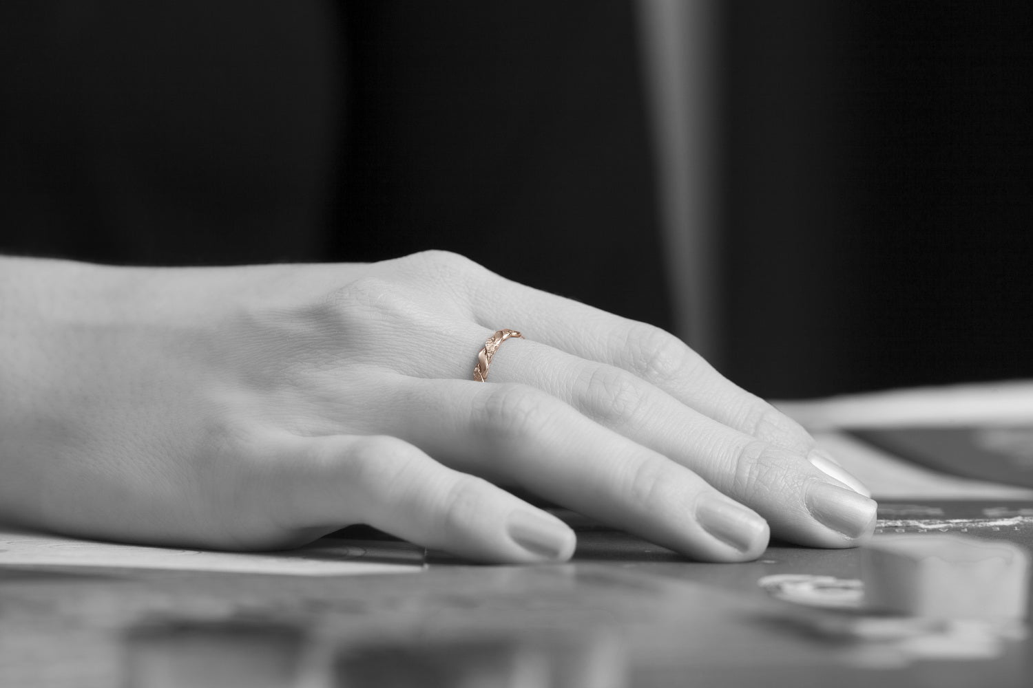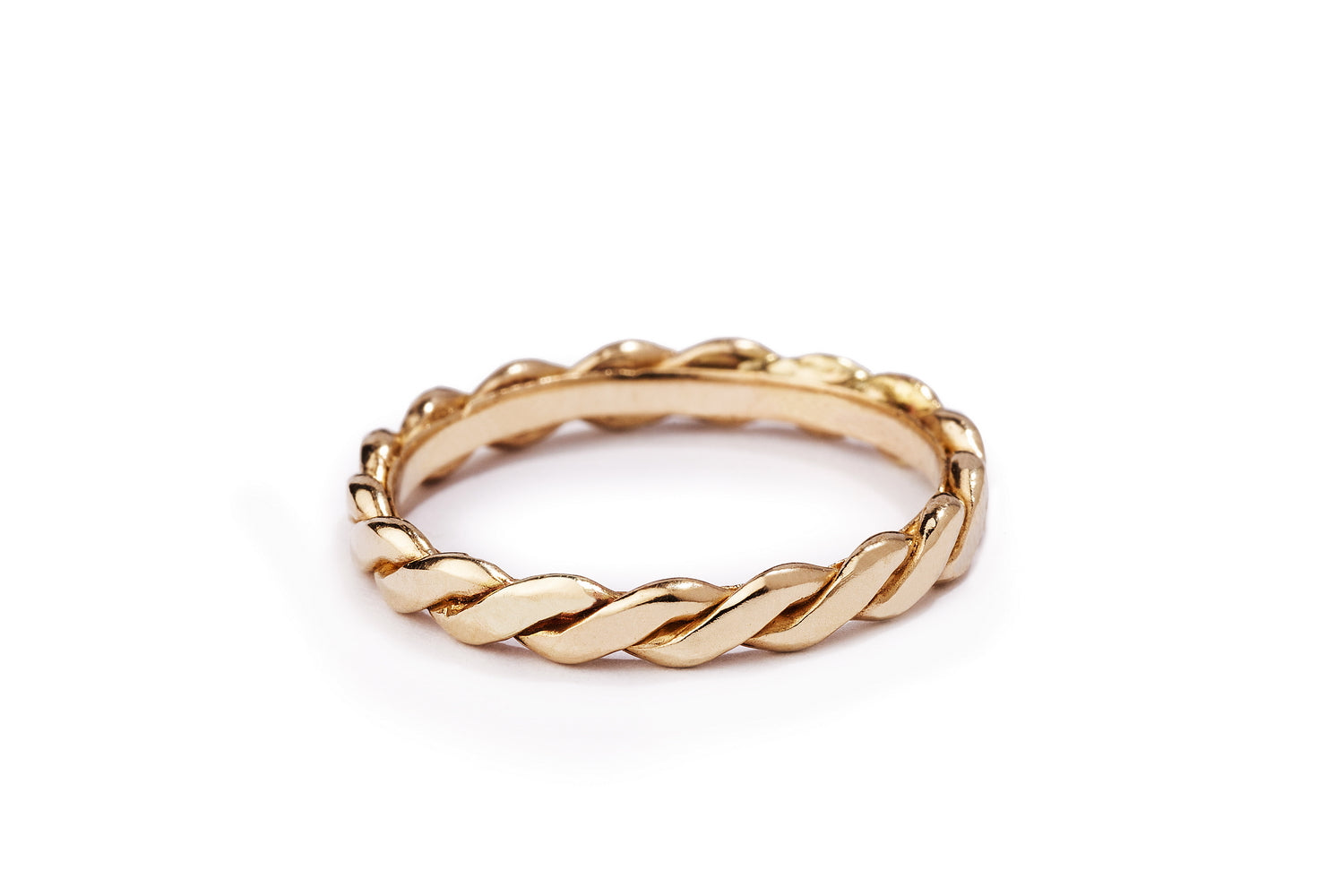 טבעת נישואין עדינה עשויה בעבודת יד שני פסי זהב מפותלים וקפואים בתנועה. עבודת יד מוקפדת ואיכותית מדגישה את העיצוב הזה שהוא וינטאג׳ קלאסי שאף פעם לא יוצא מהאופנה