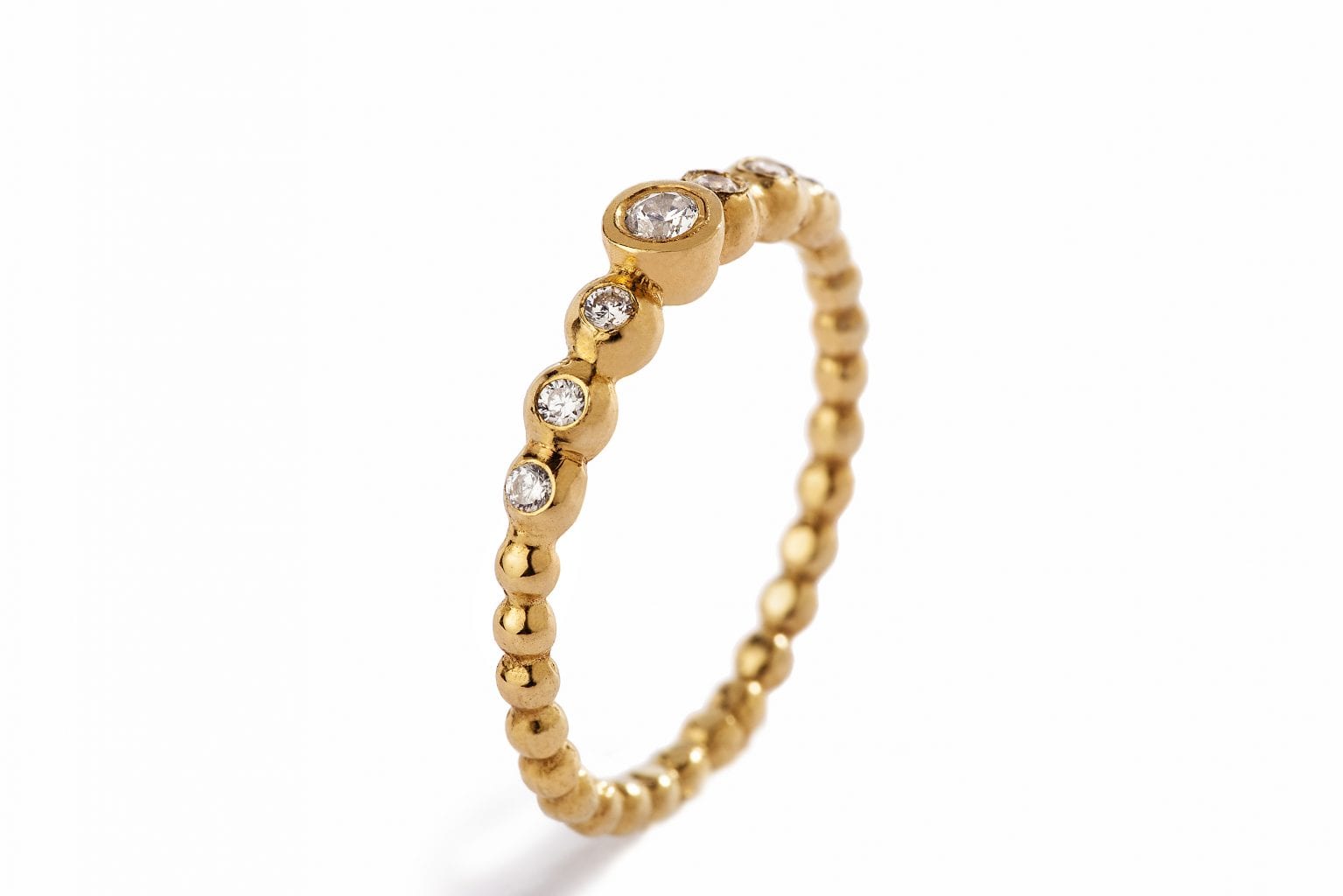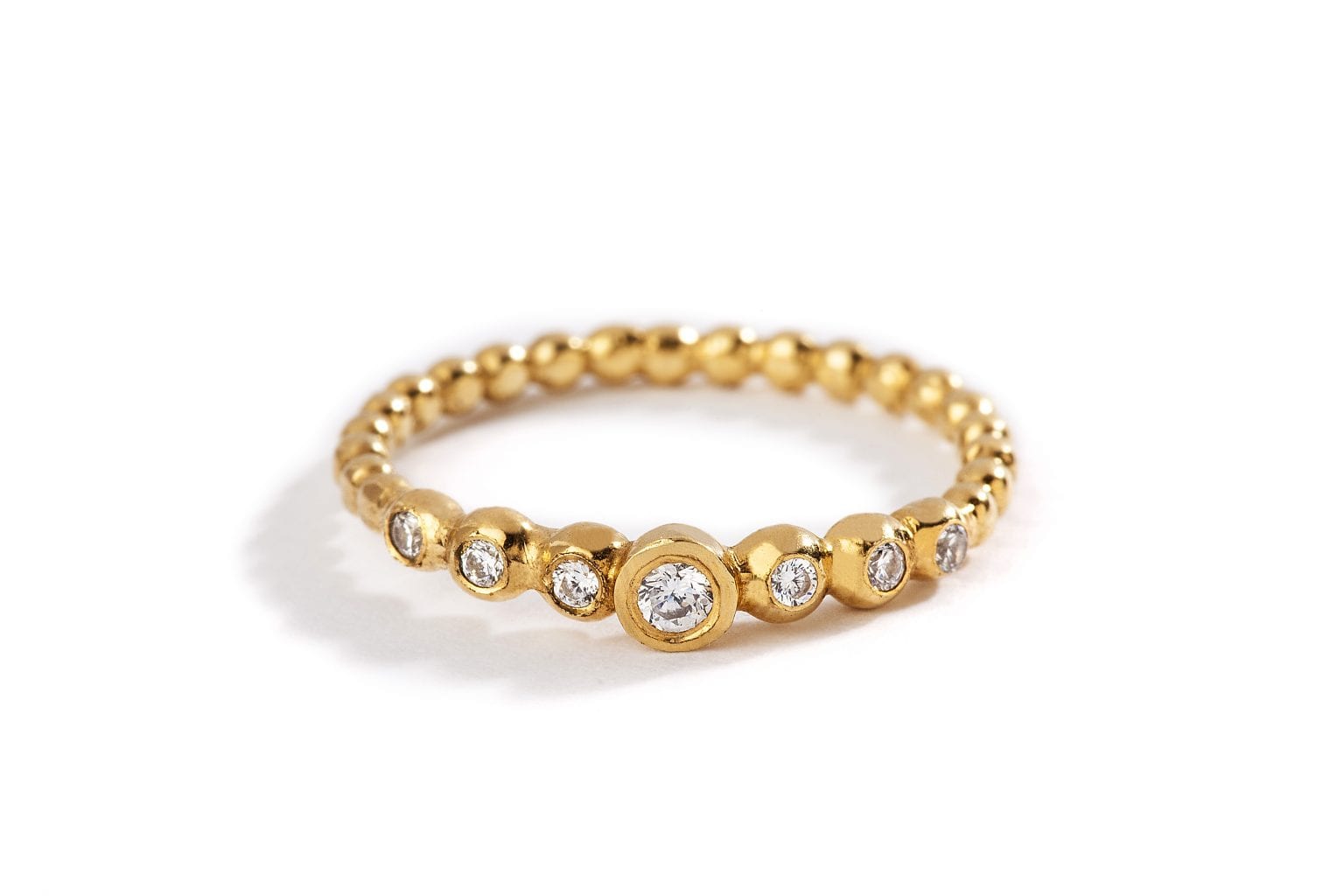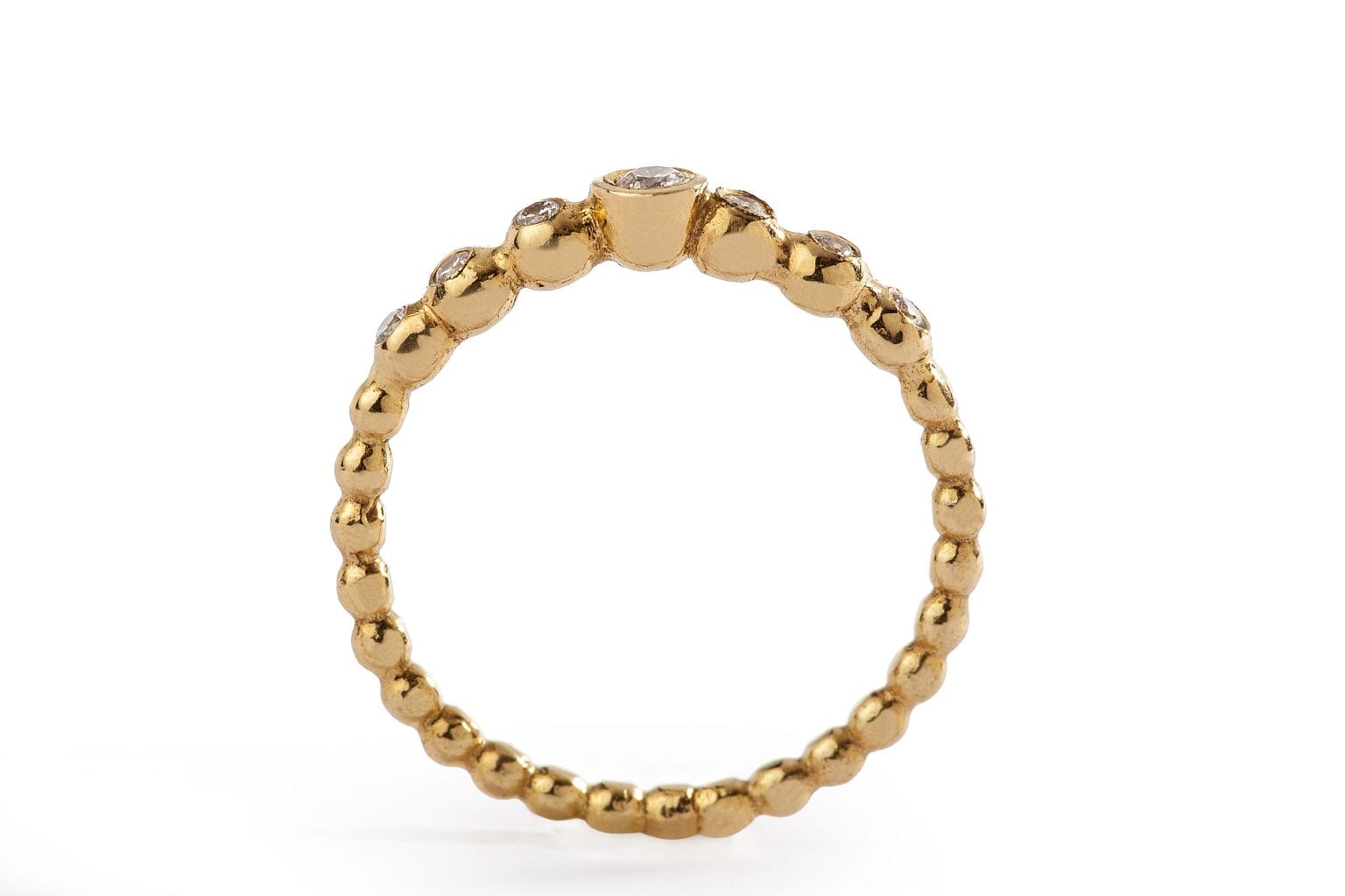 טבעת אירוסין לאוהבות המראה העדין. הטבעת עשוייה בעבודת יד מוקפדת ובמרכזה כתר זהב עשוי כוסות זהב בגדלים משתנים ובהן משובצים יהלומים בגדלים משתנים המשך הטבעת עשוי עגילוי זהב עדינים המחוברים אחד לשני ליצירת טבעת מושלמת ומיוחדת..