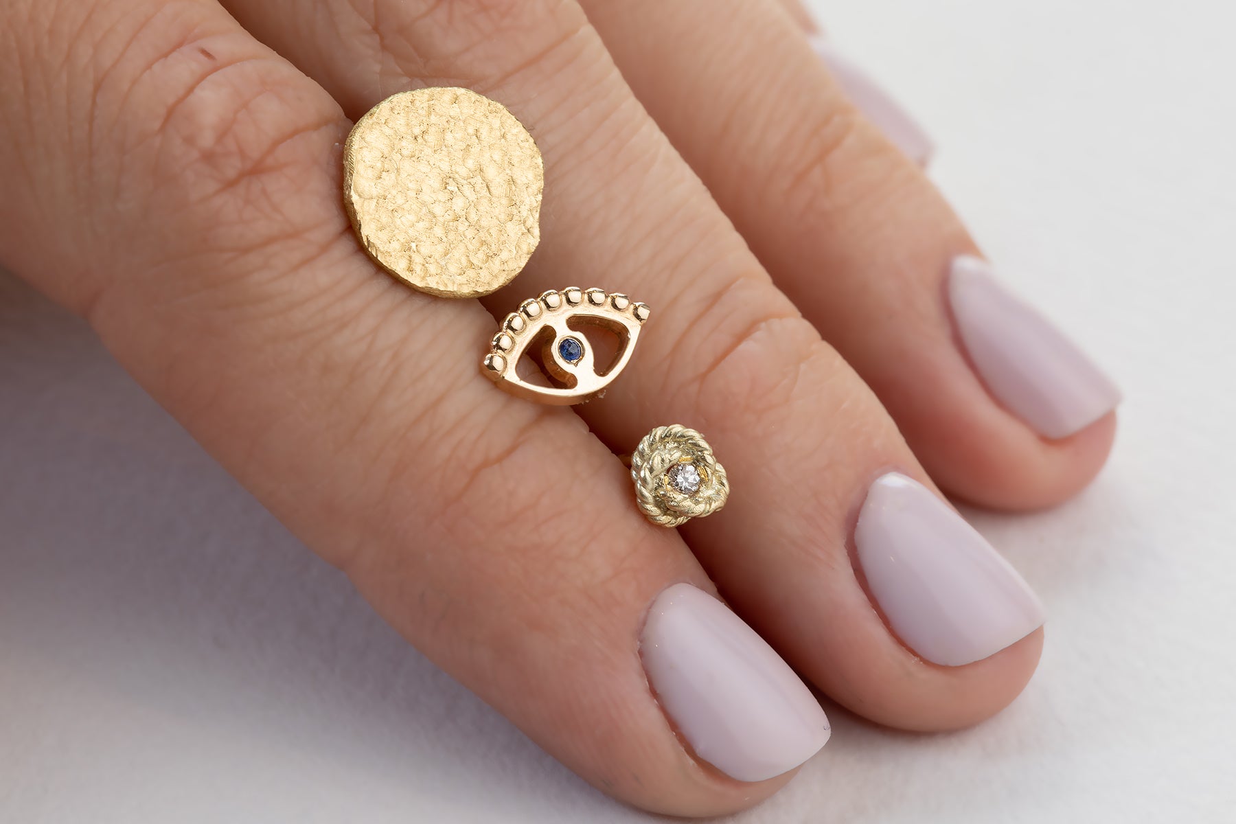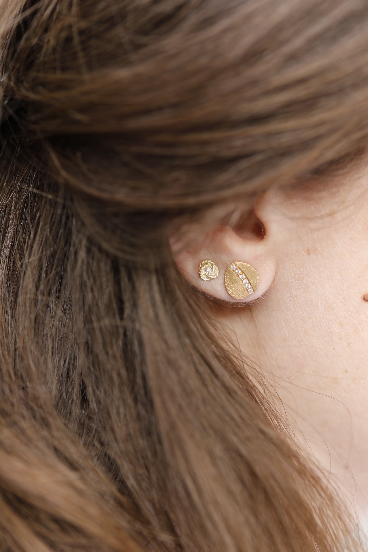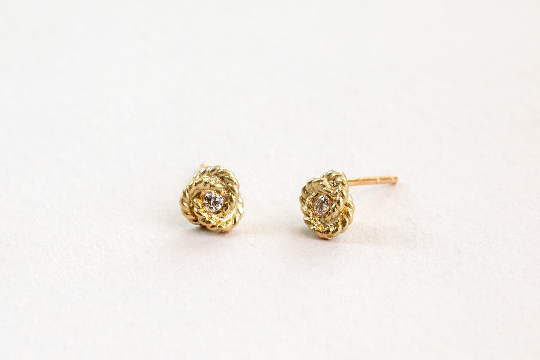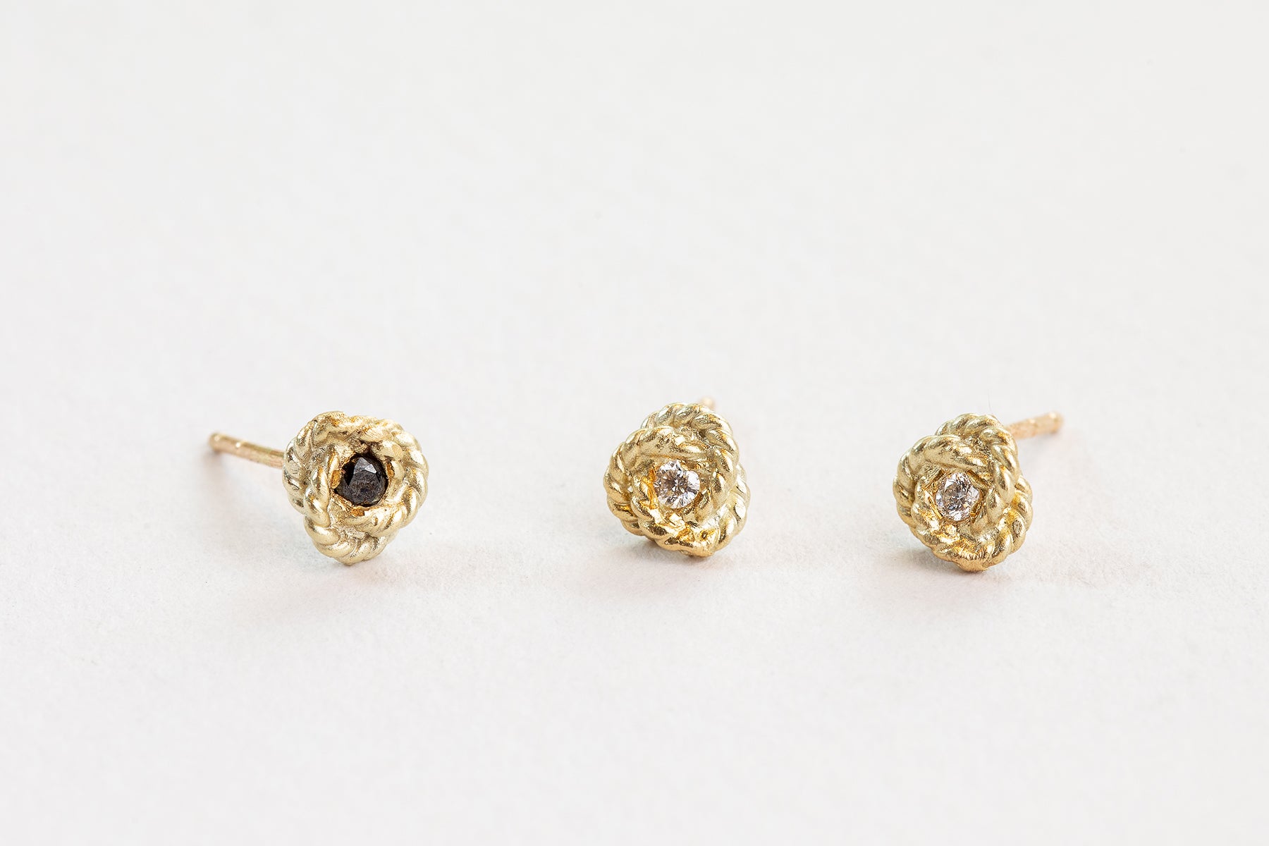 עגיל הקשר הקלאסי, צמוד אוזן ומשובץ יהלום. העגיל עשויי בסטודיו בעבודת יד וניתן לשבץ במגוון אבני חן. תוספת מושלמת לעוד עגילים על האוזן. אפשר לקנות כעגיל יחיד או כזוג.