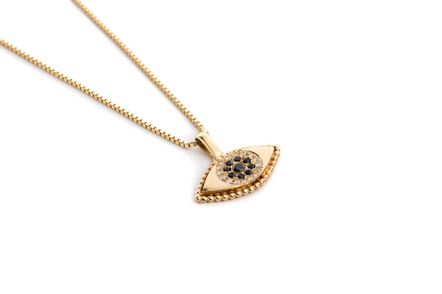 שרשרת עין זהב קלאסית - יהלומים - יהלומים שחורים - ספיר