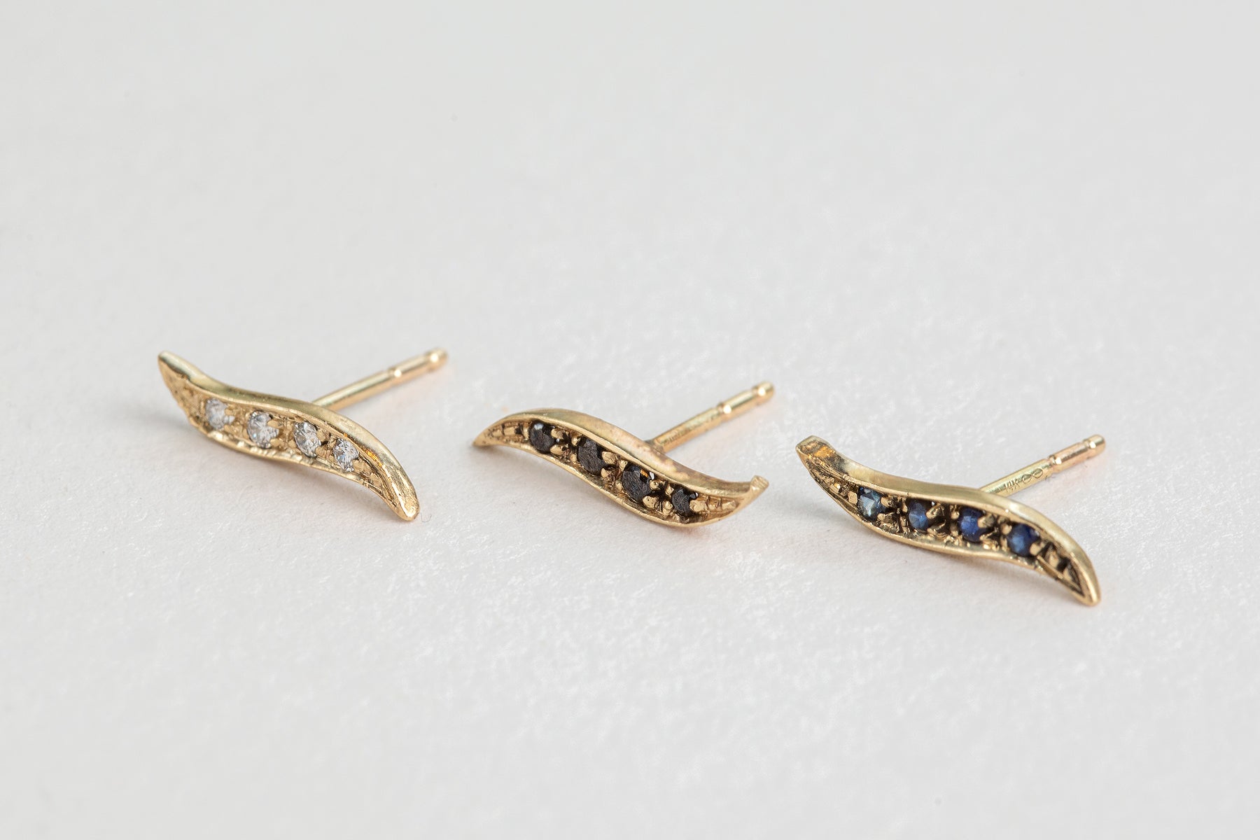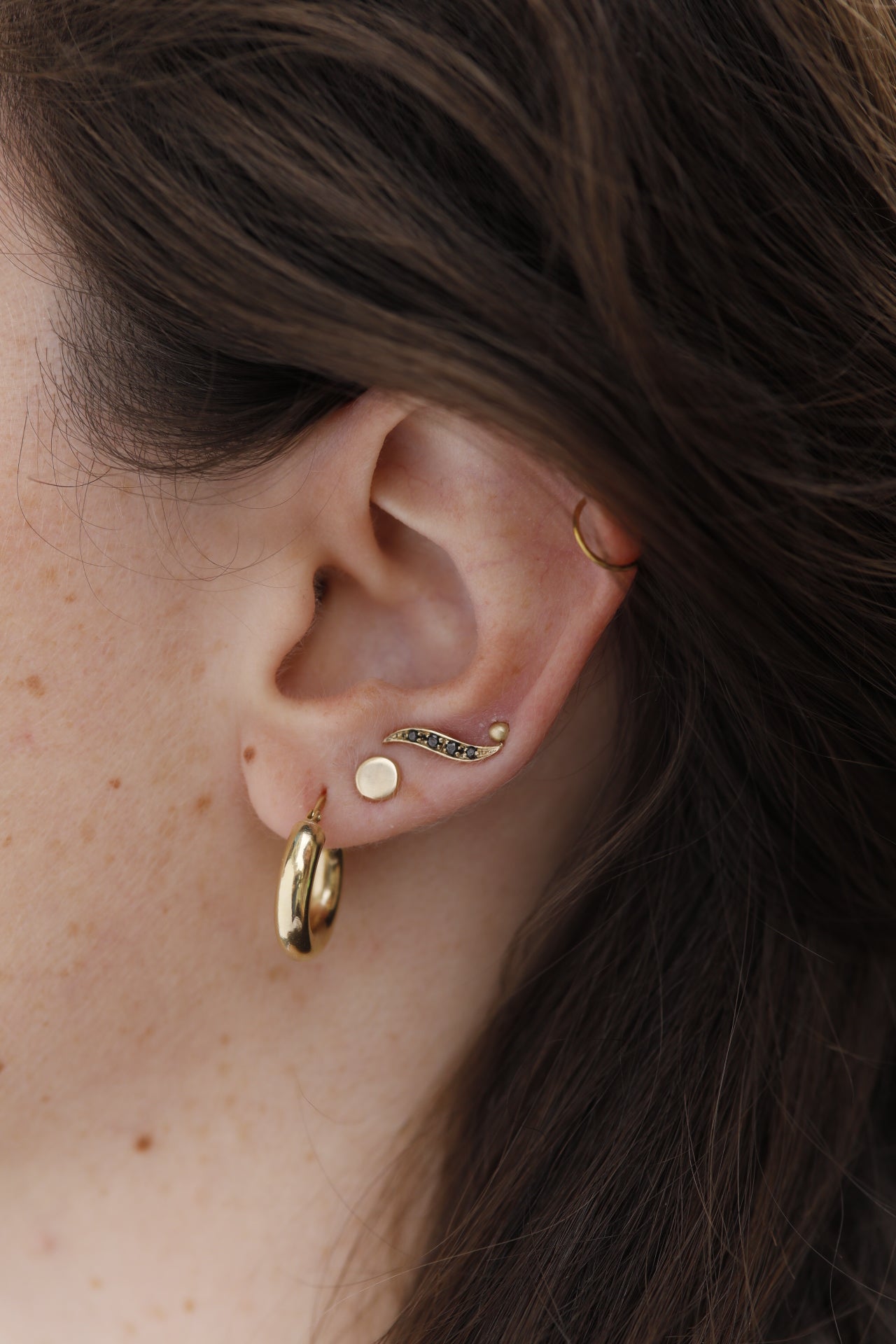 עגיל גל יהלום שחור הוא עגיל זהב צמוד לאוזן בצורת גל עדין שהוא תוספת משדרגת לכל אוזן. העגיל משובץ בארבעה יהלומים שחורים מושלמים וניתו לענדו לאורך או לרוחב. לתשומת לבכם העגיל נמכר בבודד.