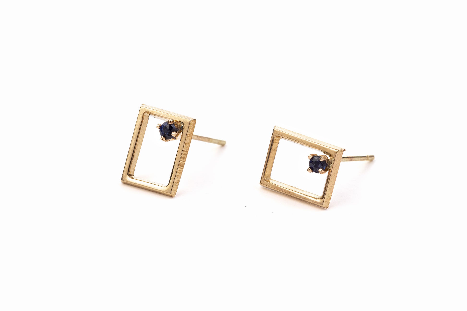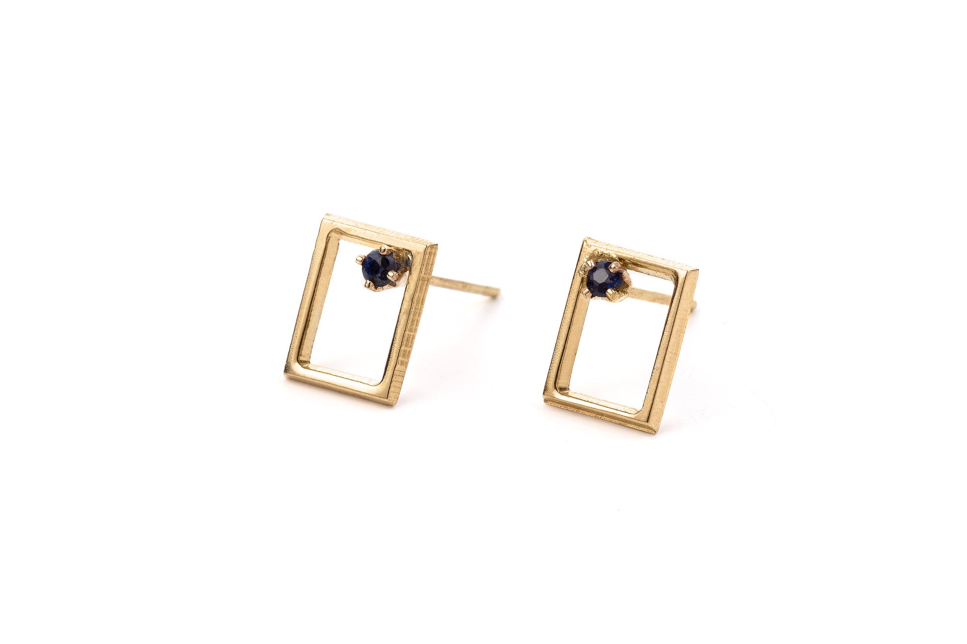 עגיל זהב גאומטרי - מלבן - יהלום שחור