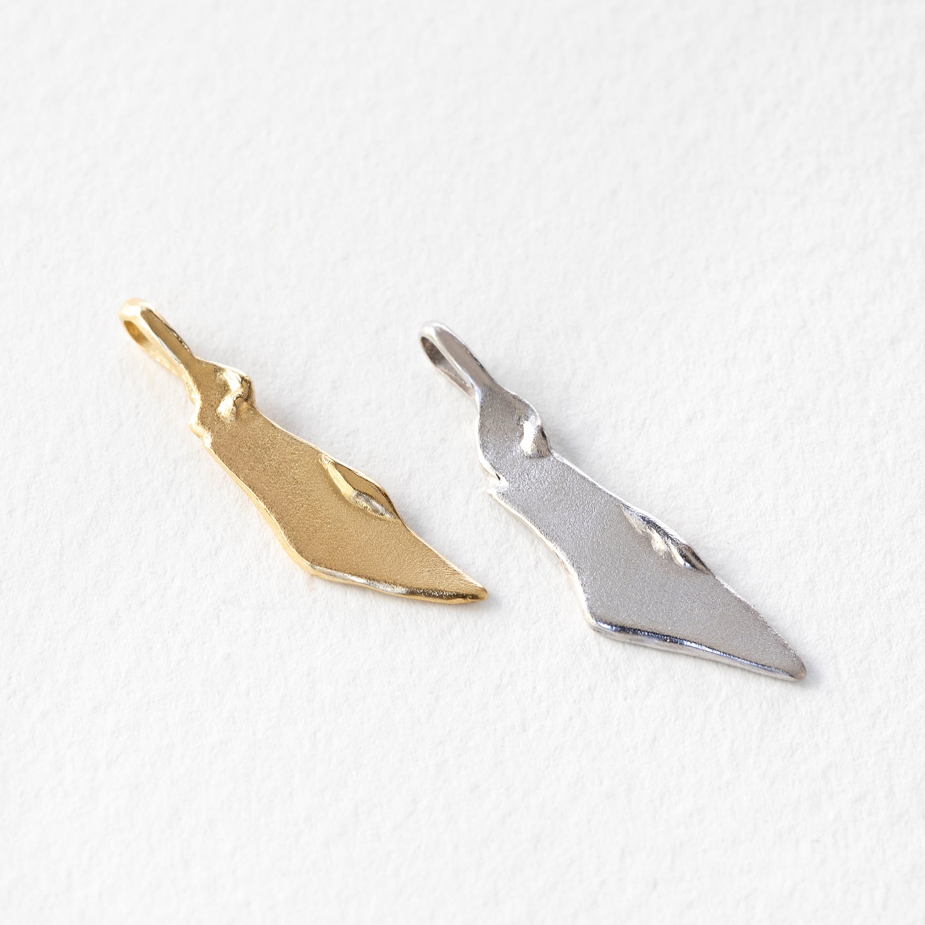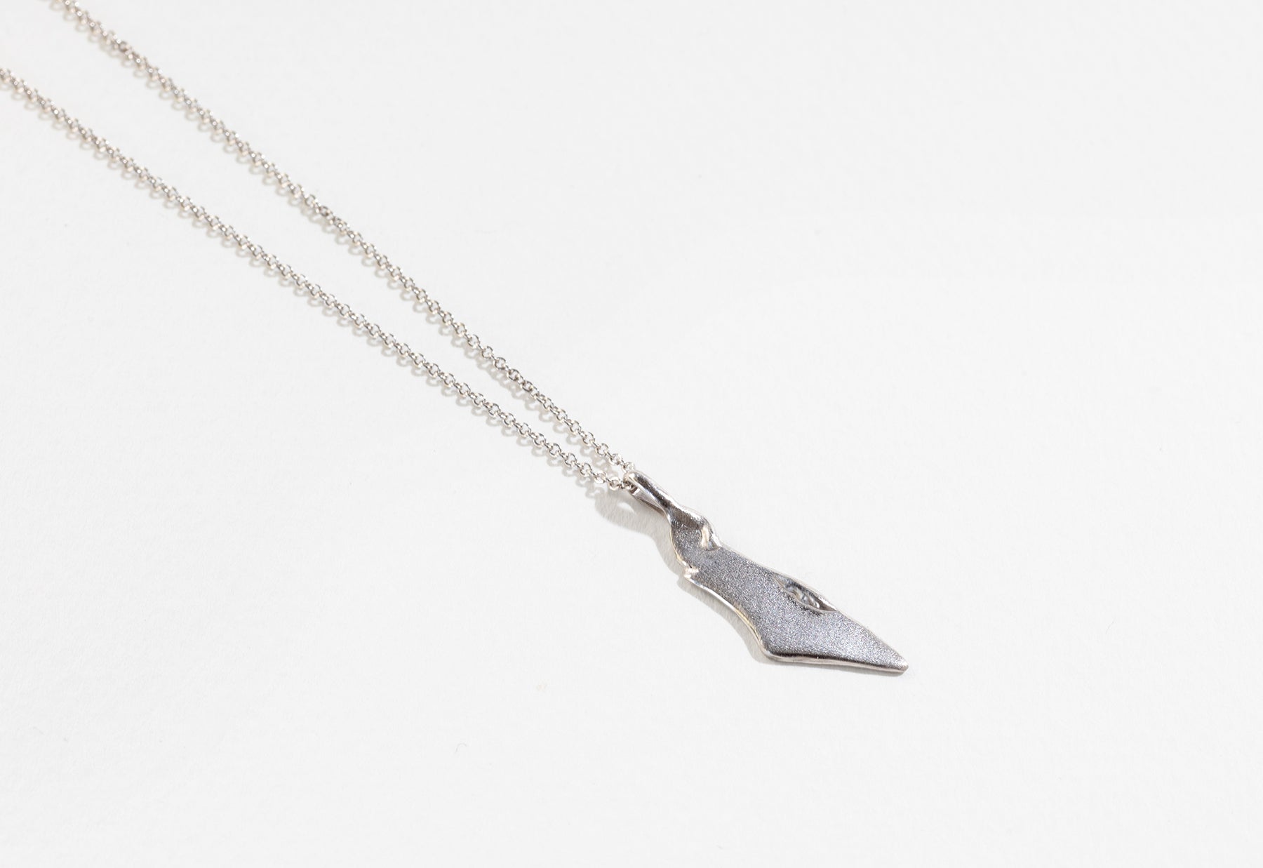 שרשרת יפהיפיה מפוסלת בשעווה בעבודת יד בסטודיו שלנו בתל אביב. השרשרת עצמה עשויה חוליות זהב ועליה תליון ארץ ישראל מעוצב בגימור שמשלב מט ומבריק.