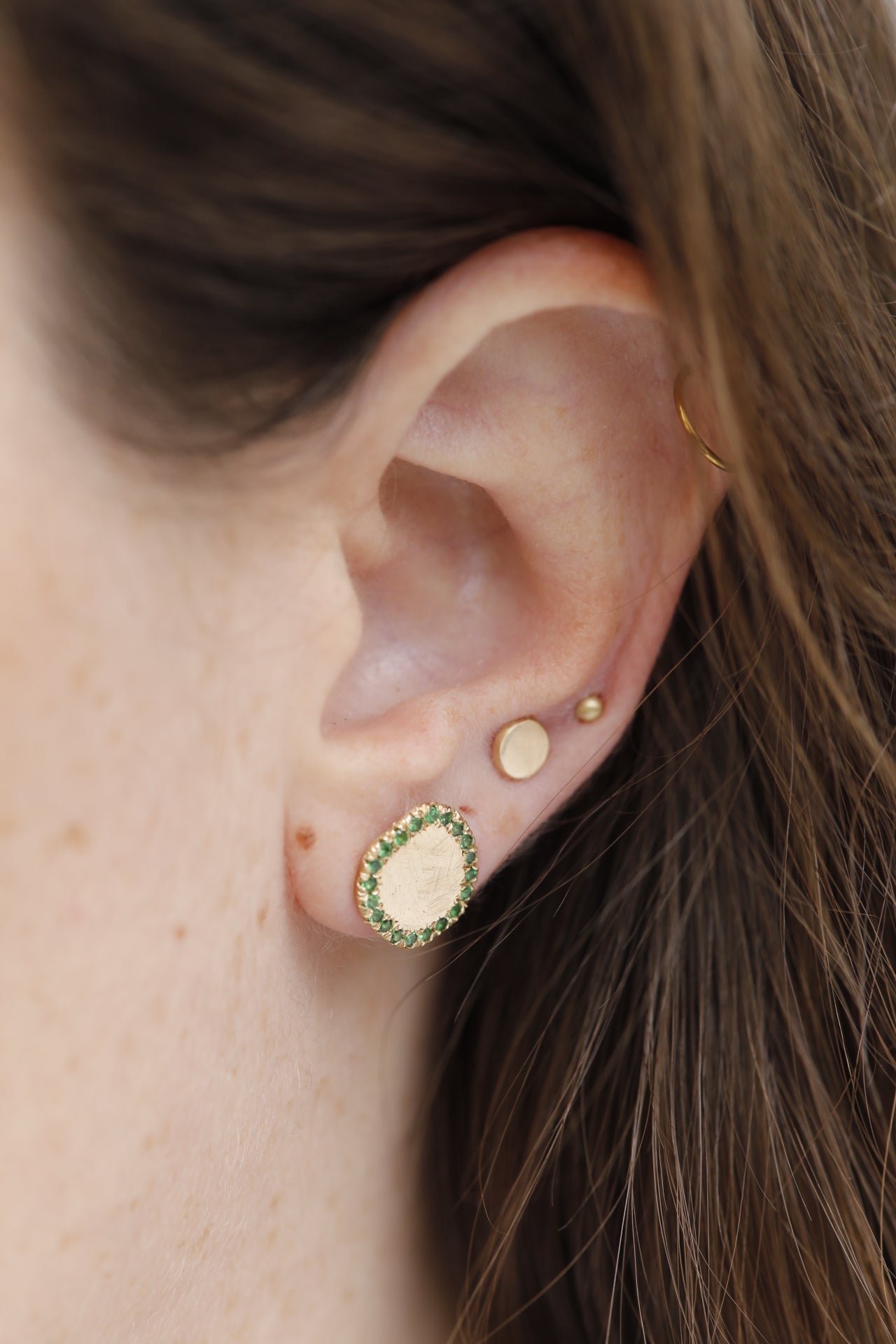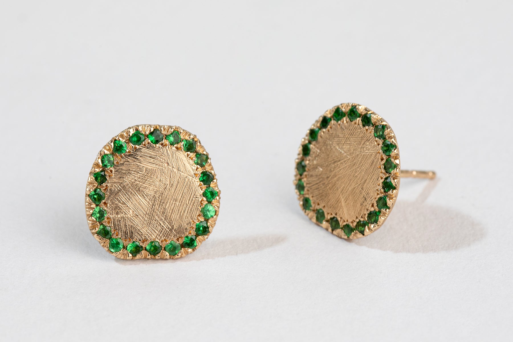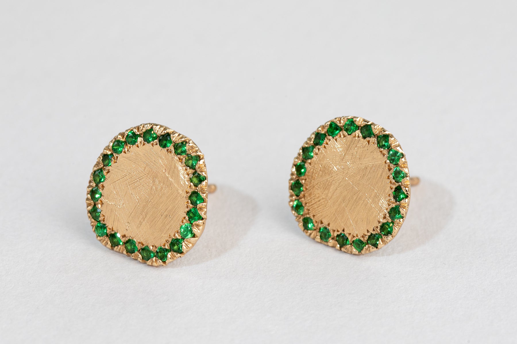 עגילי זהב מרשימים במיוחד בעלי מבנה עגול היושבים צמוד לאוזן. עגילי זהב נגה סטאר משובצים אבני צבורייט ירוקות שמשתלבות כל כך יפה עם הזהב ומעניקות לו מראה מיוחד וזוהר.