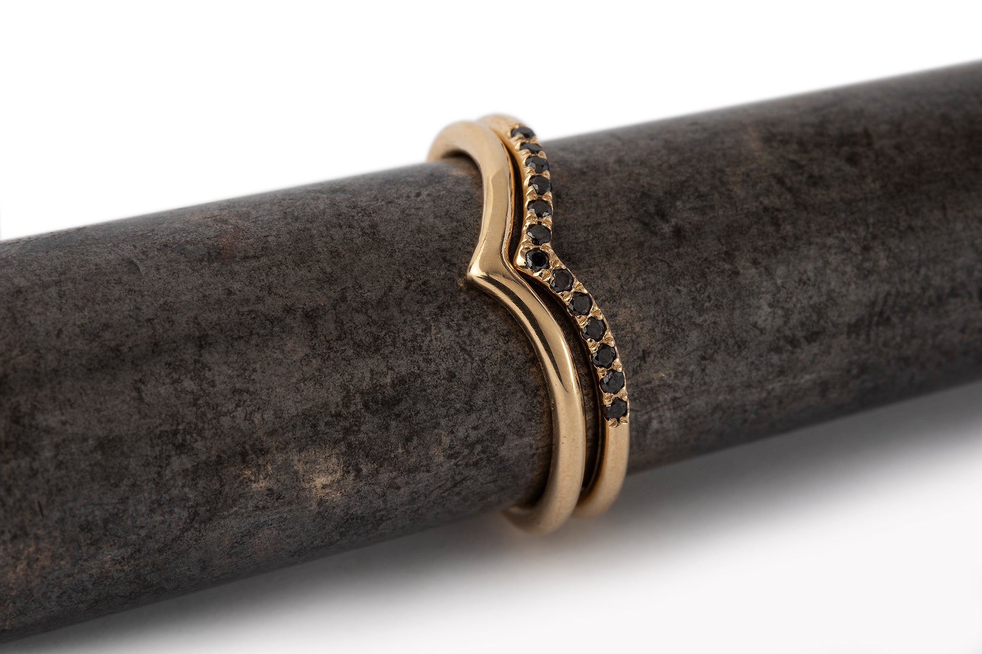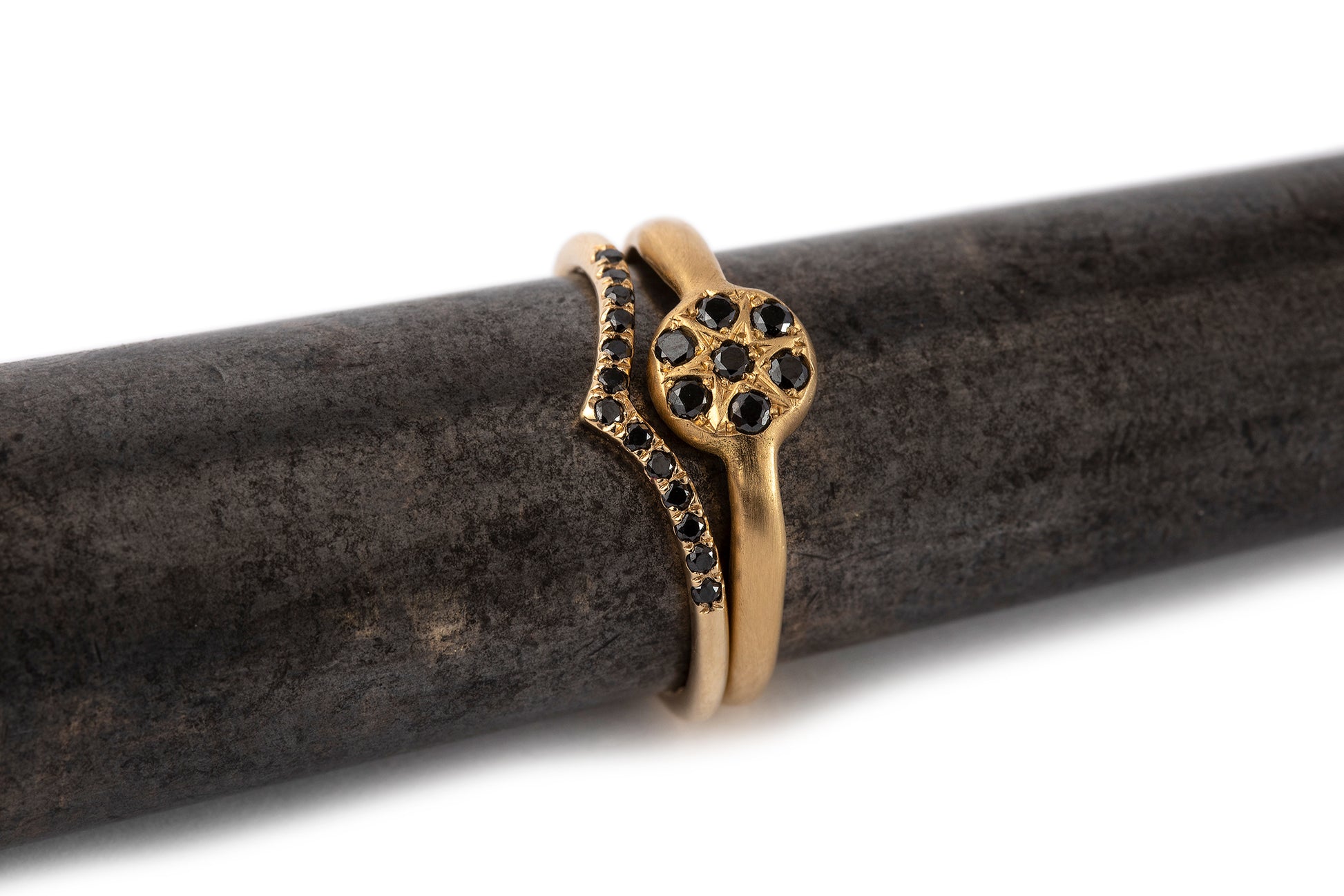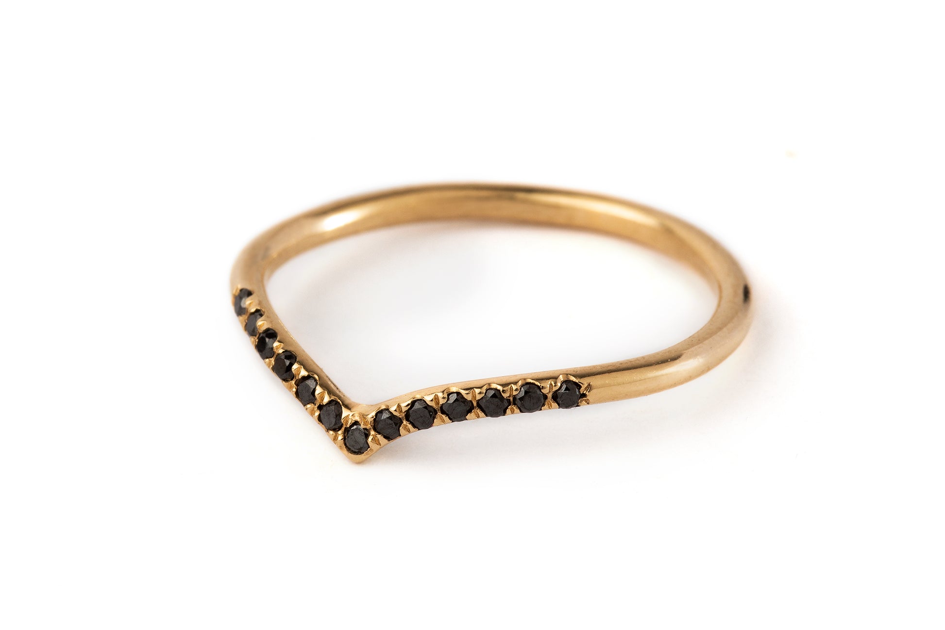 הטבעת המושלמת לאוסף הטבעות שלך. בעלת פרופיל עגול ועדין היושב בנוחות על האצבע היא משובצת ביהלומים שחורים ומשדרגת כל לוק. נהדרת בעדינותה כמו שהיא או עם עוד טבעות.